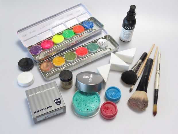 - Perder la sombra en polvo en los colores de su elección - he probado Mis plantillas con algunos tipos de maquillaje y pintura de la cara y colores de tipo de polvo suelto como el Polvo de maquillaje Kryolan cuerpo eran los más efectivos. Agua activada pinturas Kryolan Aquacolor puede trabajar tan bien y son excelentes para crear colores base, pero son un poco más difíciles de aplicar a las plantillas y tienden a sangrar si muy acuosa.