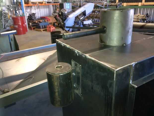 Esta es una pieza de tuberías de pared gruesa con 1/4 de pulgada BSP conexión soldada en la base y un trozo de tubo de 1 pulgada soldadas a la parte superior. El depósito es extraíble como la válvula utiliza accesorios de compresión y el tanque se retira para el montaje de la válvula. Después de que la tubería entra en el tubo grande en la parte superior de la vivienda, hay una esquina de 90 grados vapor pipa soldada con autógena para dirigir el impulso de aire hacia abajo en el centro del filtro del aire. Presión en este tanque es directamente desde el compresor a unos 100 psi