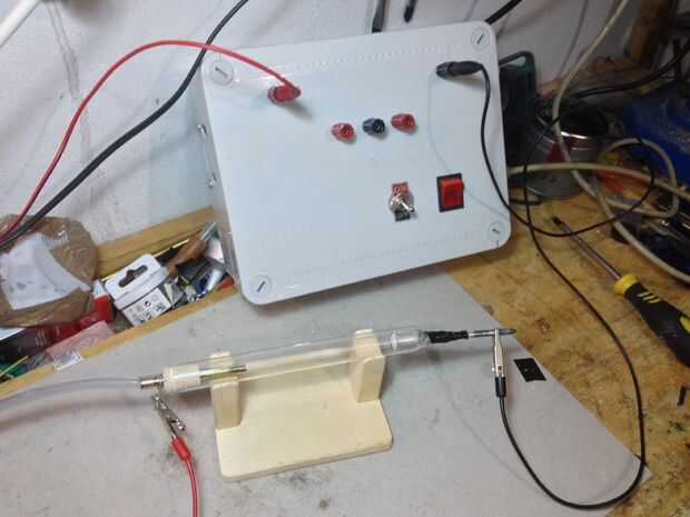 1) montar la cámara. Si hiciste todo bien debería haber 12cm de distancia entre los dos electrodos.