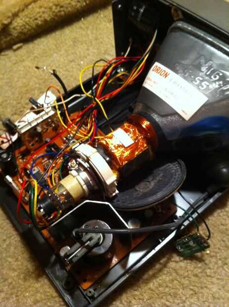 Corte las puntas a los controladores de imán vertical y horz y el calentador del tubo, esto me deja con una sola tarjeta que tenía el flyback codiciado, también corte la sección del sintonizador de la Junta porque sacó la otra 3'