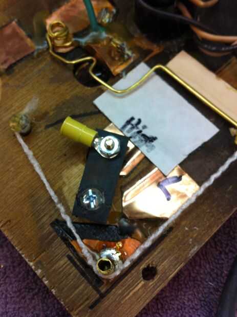 relajados los puntos siguen siendo ligeramente separados, no quieres un corto muerto. (es el trabajo de bloque pequeño de madera sobre el alambre de cobre amarillo