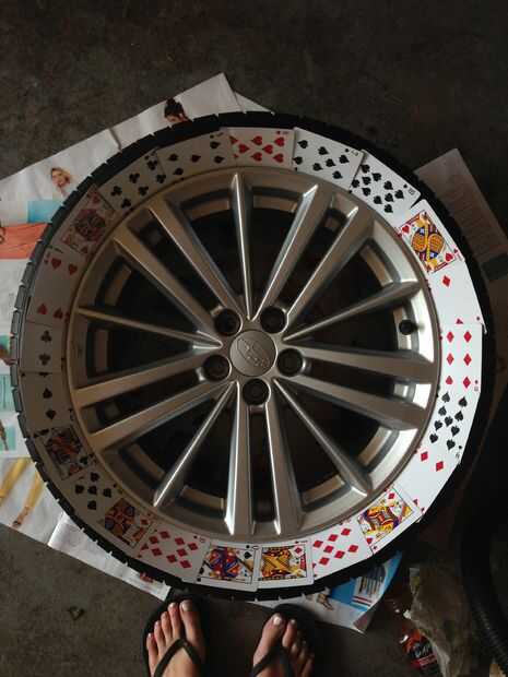 Limpiar llantas de grasa, suciedad, etc. y seco. Neumático interno de línea con las tarjetas (para evitar el exceso de pulverización). Te sugiero cambiar tus neumáticos invierno y de verano para el día a dejar totalmente la pintura seca durante la noche después de la fumigación.