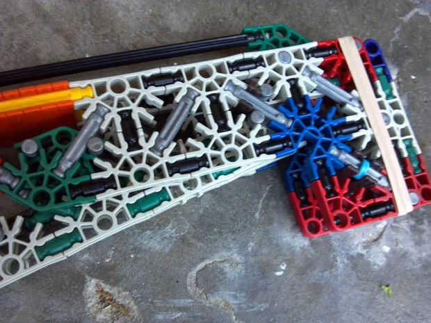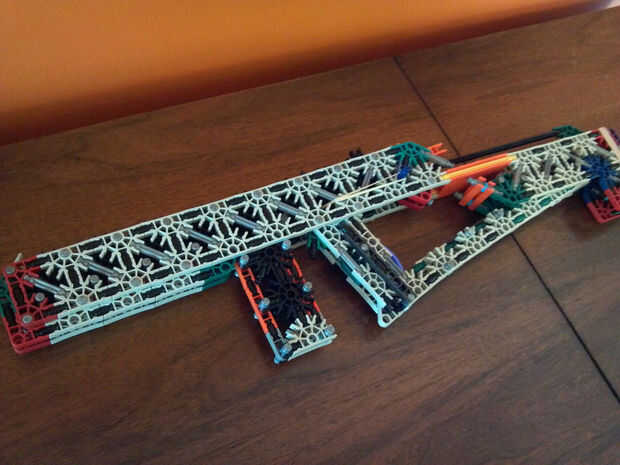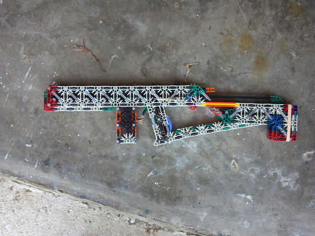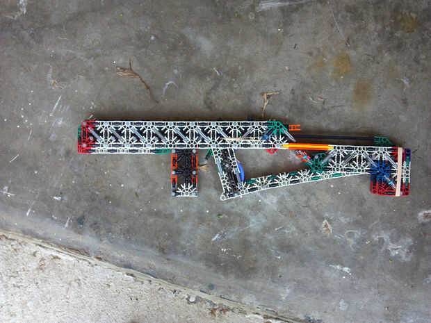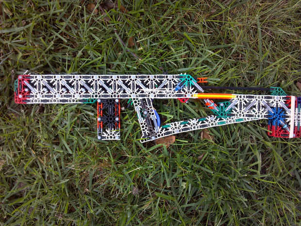 Lo que hace esto realmente dulce es preciso en la gama cercana. Siempre he pensado que tener un barril bastante largo y apretado en una pistola de K'nex reducir la gama y aumentan la precisión muy poco. Me equivoqué! Dentro de las gamas interior, este arma es una verdadera bestia. Era capaz de golpear un pop puede consistentemente desde a través de mi habitación, y la pistola todavía dispara 45-50 pies con un #117 banda. La munición es gris conectores, y los elegí para que le voltee final final cuando un disparo, en lugar de tirarse en una detección aleatoria.