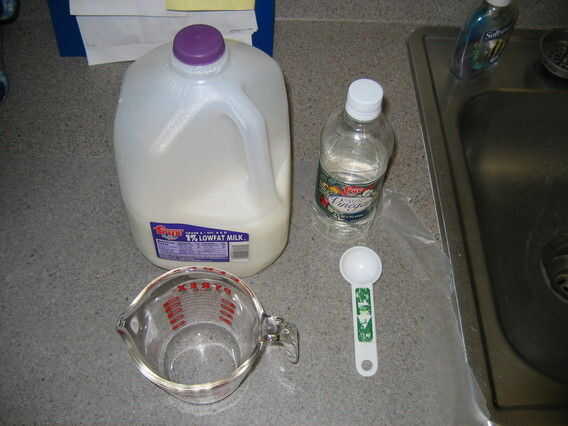 Cuanta leche y vinagre se necesita? La relación básica que sigo es de 1 cucharada de vinagre por cada taza de leche. (proporción 16:1, leche vinagre)