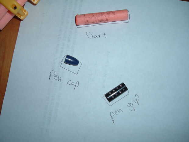 Tapa de la pluma de A 2) y agarre (Asegúrese de que encajan togetherand el dardo)