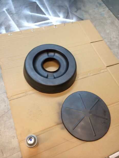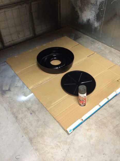 TechShop tiene una cabina de pintura agradable con ventilación, el plástico con un par de capas finas para reducir al mínimo las posibilidades de funcionamientos y defectos de pintura. Primero pinté el interior por lo que podría darle la vuelta sin estropear la pintura. Permite unos 10 minutos entre capa y capa.