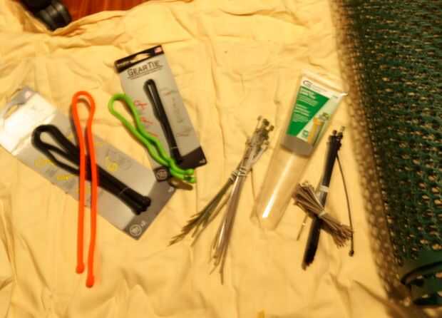 Tengo Artritis en mis manos y encontró que tratar con el vallado rígido era difícil. Sin embargo, estaba muy motivado para conseguir estos rollos de lona de la manera perseveró. Tengo muy poco espacio de piso y necesitaba otra solución que la que se inclinan los rodillos contra la pared. También tenía una variedad de esgrima, bridas y lazos del engranaje a mano.