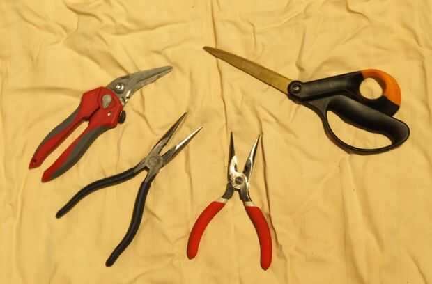 2. pinzas para enhebrar las bridas por los agujeros y sujetándolos