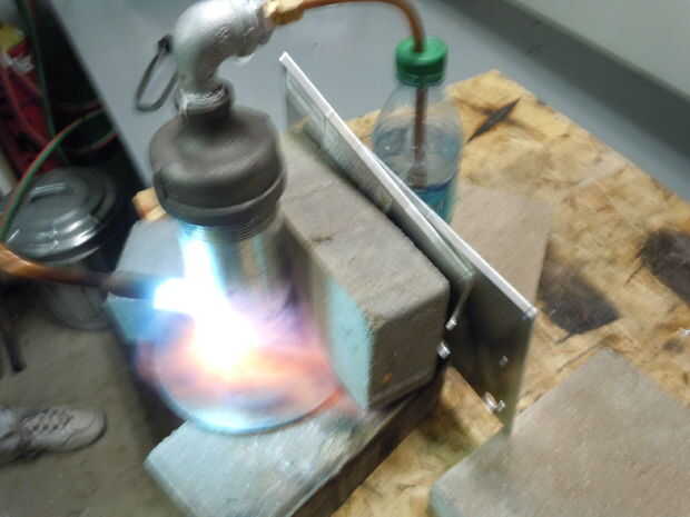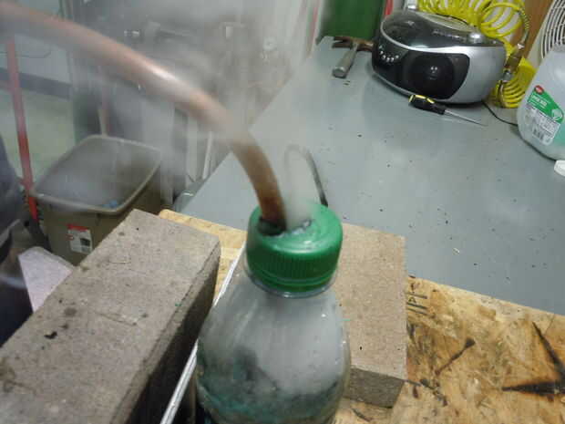 Ahora, suponiendo que se construye justo, usted puede comenzar. Empezar por trituración de bolsas de plástico que se usan comúnmente en las tiendas y acaba de obtener una gran pila de él. Dependiendo de cuánto tuyo es usted tendrá que tener una pila más grande o más pequeño. Una vez lo suficiente como para llenar para arriba, materia tan estrecha como sea posible y trate de salir todo el aire. Luego cerrar o tornillo de la tapa y coloque la salida de la pipa en una gran cantidad de agua a temperatura ambiente. Ahora usando un soldador con una punta de calefacción u otro tipo de fuente de calor, comenzar a calentar el recipiente en que el plástico es en. Necesita el contenedor a la gama de temperaturas entre los 1000-1200 grados y mantenerlo allí durante 5 minutos en un pequeño proyecto pero aún más en una más grande. En este momento debe empezar a ver algunas burbujas que salen del tubo de aire y hasta por el agua.