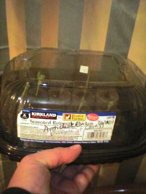 Invernadero pequeño para añadir a potes/plantador cuadrado existente.Mina se utilizan en cajas de plástico de comida reciclada, utilizados para hacer crecer la hierba por el momento.Te hace falta:Palillos de madera (4)CintaLámina de plástico (de vací
