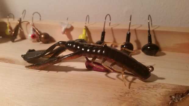 Meter la caña del gancho el cebo por lo que no esté expuesto! En esta plataforma, en comparación con el Boomstick esto dará el cangrejo la parte inferior de la postura de defensa de agua! Laker plantilla del pescador loco fue utilizada y la Bambaits CrawwDaddy.