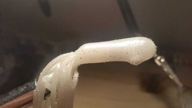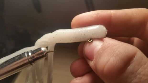 Cuando la plantilla no pasará ningún empuje adicional en el bombeo en el tubo con su figernail para exponer el ojo del gancho! Ahora está hecho este cebo!