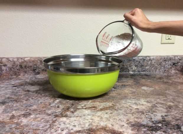 • Mida y añada 2 tazas de harina (250 g) en un recipiente.