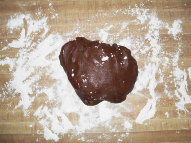 Sobre una superficie bien en polvo para amasar. La elección del polvo depende de usted. He encontrado harina para ser el más fácil, pero quiten el sabor. Cuando se utiliza mantequilla real, ha parecido que he tenido que añadir menos polvo que con margarina. Gradualmente agregar más como se trabaja la masa y amasar hasta que esté satisfecho con la consistencia.