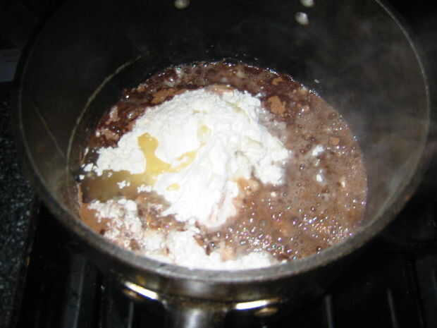 Agregar el agua hervida y el aceite a la olla de los ingredientes secos. Gire a la estufa a fuego lento mientras se revuelve rápidamente. Una vez que la consistencia de puré de patatas sacar la masa de la olla y amasar hasta que quede blanda y suave sobre el mostrador.