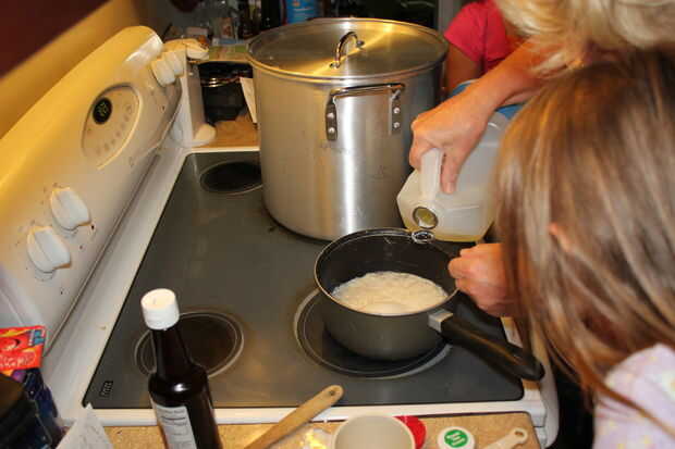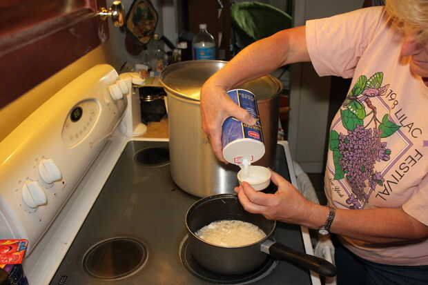 Si desea puede batir los ingredientes para conseguir combinado con sin grumos, pero pronto se espese hasta el punto que necesita para pasar a una cuchara de madera para seguir revolviendo.