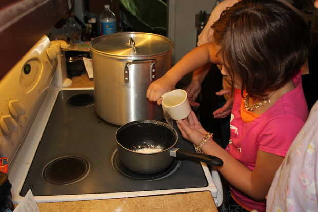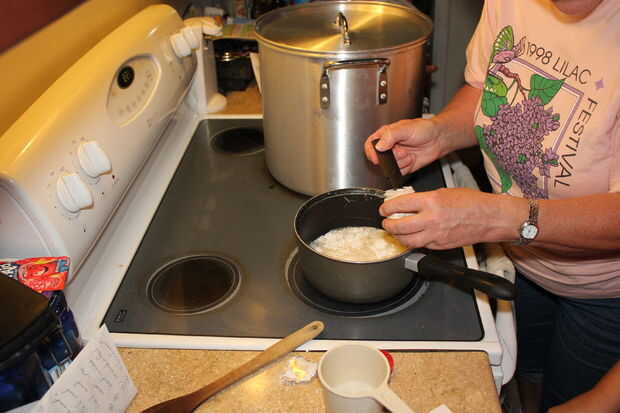 En una cacerola sobre fuego medio, combinar los ingredientes.