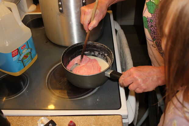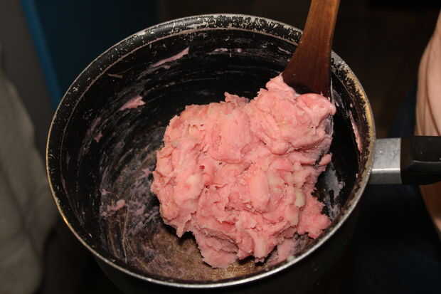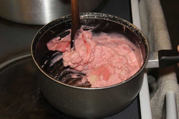 Antes la masa empieza a espesar le puede Agregar el colorante.