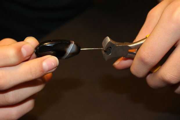 Coloque el alambre a través de la piedra y corte con la herramienta dejando un espacio para hacer un aro.