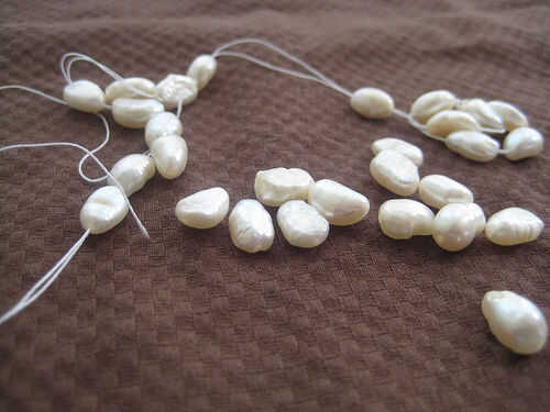 Usted puede seguir fijar los ojales juntos de esta manera con pequeñas anillas. Sin embargo, opté por crear jaulas pequeñas con perlas de agua dulce dentro colocar entre cada configuración espiral ojete.