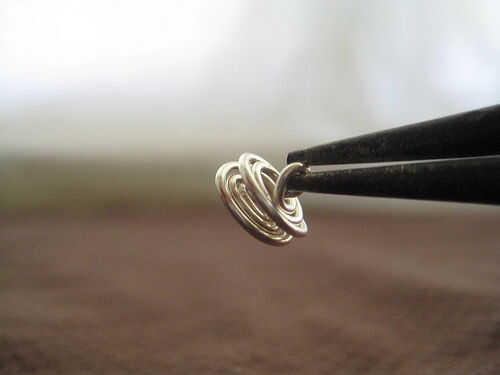5. Saque con cuidado los círculos centrales de cada espiral perpendicular usando sus alicates de punta redonda.
