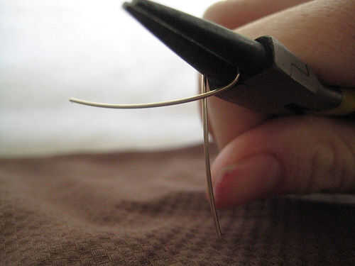 Último, es necesario crear sus sujetadores! Para el ojo del sujetador: 1. corte un pedazo de 2 pulgadas de alambre. Para crear la forma circular, envuelva el cable alrededor de la parte más ancha redondeada pinza aproximadamente a medio camino