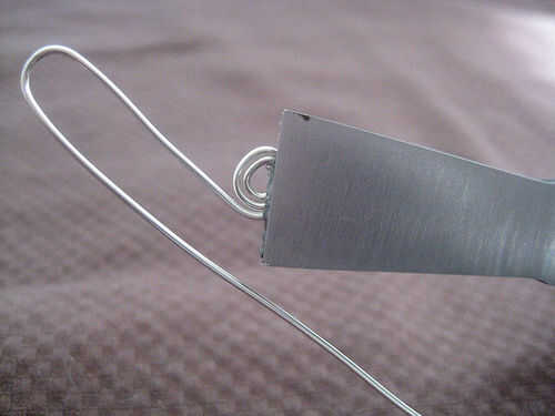 4. Agarre el círculo en los alicates de punta planos, continuar rizar el alambre alrededor de sí mismo en la misma dirección para aumentar el diámetro en cada vuelta. Lo mismo para el otro lado.
