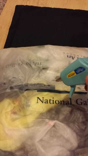 Después caliente pegar la bolsa rellena, resbaló en la funda de almohada y lo colocó encima del mesa/asiento.
