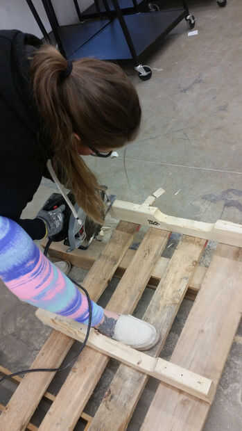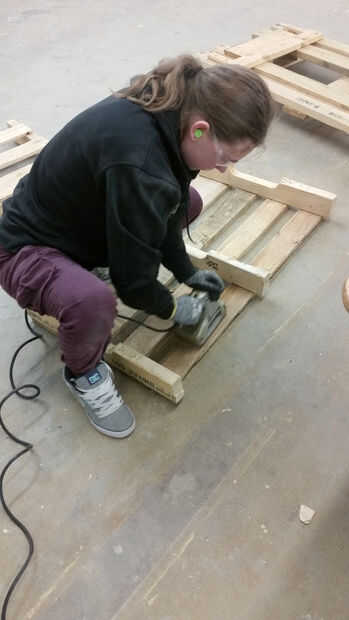 Todos los lados de las paletas para eliminar cualquier parche áspero, astillas y pedazos que puedan provocar enganches de la arena. Luego pintar.