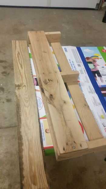 utiliza algunos Pino 1 x 6, arce Suelo de restos de madera y tornillos de primera para hacer un pequeño estante portátil.Paso 1: Sujete las piernas Para las piernas, usaba suelo de arce de chatarra, pero también puede utilizarse Pino 1 x 2. Eran cerc