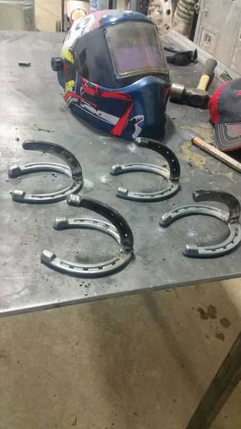 2 zapatos en medio y soldar como se muestra. En este momento el cepillo de alambre la escoria y la superficie y aplicar pintura o capa clara... Escogí la pintura negra de aerosol. Una vez que las curaciones de la pintura que pueden asegurar los ganchos. He usado clavos de acabado a través de los orificios.