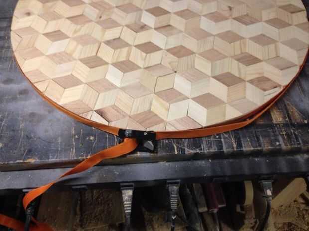 Estaba en un colapso de tiempo hacerlo, así que hice todas las piezas de borde a la vez, no sugiero hacerlo, tómate tu tiempo, hacer 2 a la vez. Pegamento la mierda de ellos, escalonar su 45 y más estricta la abrazadera alrededor de la pieza, las partes que se están pegando, pega una pinza grande pesado sobre ellos para mantenerlos en su lugar. espere una hora y repita el proceso hasta el final alrededor.