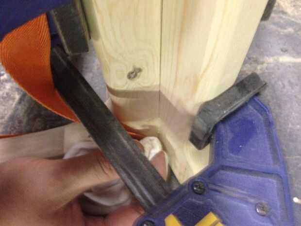 Aplicar un montón de pegamento a las caras angulosas de las piernas, asegúrese de obtener cobertura incluso todo.