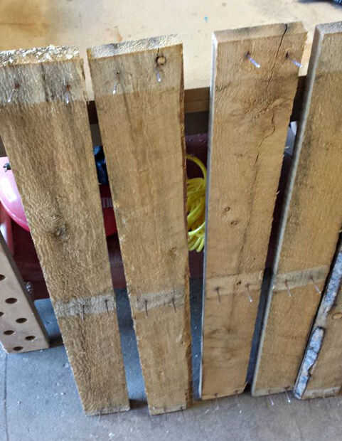 Mi cubo se hizo de un pallet de 1" espesor tableros (no se utilizaron los tres tirantes más gruesos), excepto el círculo con el corazón. Esto fue hecha de una madera de paletas de color más oscuro.
