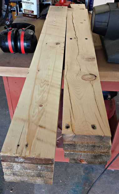 Una tabla fue planeada hacia abajo a 3/8" de espesor de las piezas de borde de centro, ya que estos parecen ser más delgadas en los alambiques de juego. Las piezas de los recortes del corazón también fueron cepilladas a 3/8" de espesor, pero utilizan tablas de un palet que fueron 5" de ancho. Esto me permitió recortar el corazón sin tener que unir varias piezas.