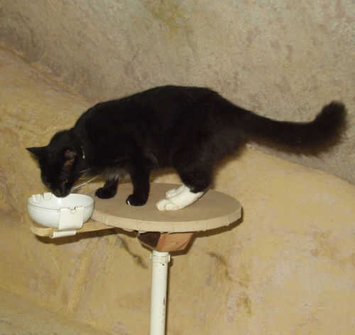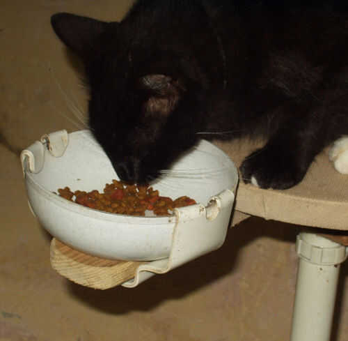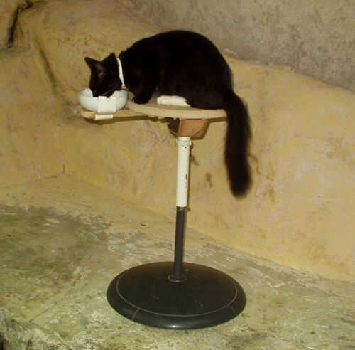 El polo en esta plataforma alimentación telescopios para ajuste de altura. Vino de base otro ventilador. Cuando mi gato era más pequeño, necesitaba un balde de 5 galones ubicado junto a la plataforma como un paso para levantarse a la comida. No más.