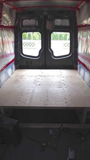 Agregar las hojas de madera contrachapada proporciona una superficie para construir en el, pero también ayuda a apoyar la estructura por debajo para asegurarse de que nada se mueve.