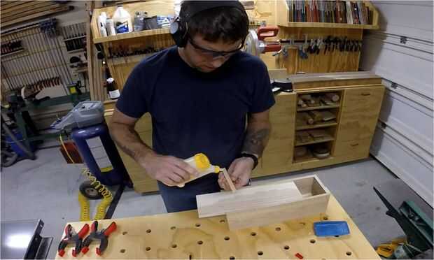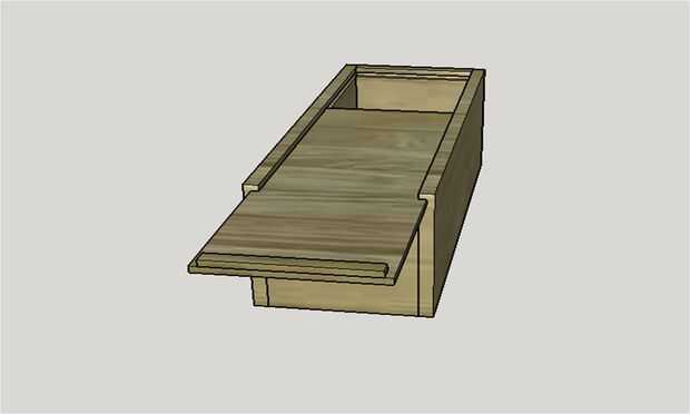 Deslice el panel superior de la ranura en la caja y luego marque donde tienes que cortar a la longitud. Luego tome el panel superior a la sierra para cortar ingletes y corte. Luego tomar la pieza pequeña que corte el panel lateral corto y pegar como un tirón.