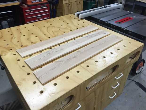 Como dije en la introducción que estoy usando tablones de madera de palets pero puede usar la madera de su opción. Las tablas que tengo son 5 1/2 x 39 pulgadas. Desde estas tablas de una plataforma hay clavo agujeros en los extremos y centro de los tableros para que planifique la disposición para evitar que estos agujeros para clavos.