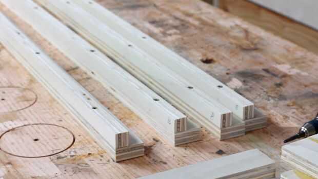 Previamente perfore cuatro agujeros en el corte B, Conecte cada una para corte A con tornillos. Proceder con las cuatro patas.
