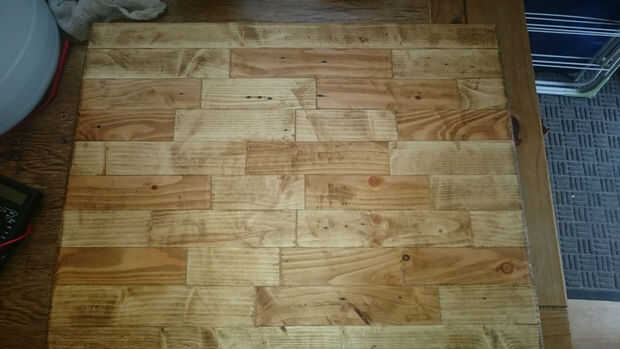 Si – como yo – no tiene un ajuste perfecto entre todos los pedacitos de madera y hay unos vacíos que necesitan llenar miedo entonces no: hay ayuda a la mano. Bajar al proveedor más cercano y comprar algunos cera de relleno de madera – es una cera blanda de color en una variedad de tonos de madera de pino a través hasta el caoba vía roble claro y oscuro. Porque es cera afeitado apagado rebanadas y fuerza en los huecos y recorte para dar un acabado relativamente transparente. No se verá perfecto, pero – como en una pared de baldosas, lechada botches sirve para cubrir a todo tipo de bricolaje. Utilicé una lámina de cuchillo Stanley a llana en la cera y luego raspar cualquier exceso, aunque las personas con más sentido pueden preferir utilizar una espátula o algo más seguro.