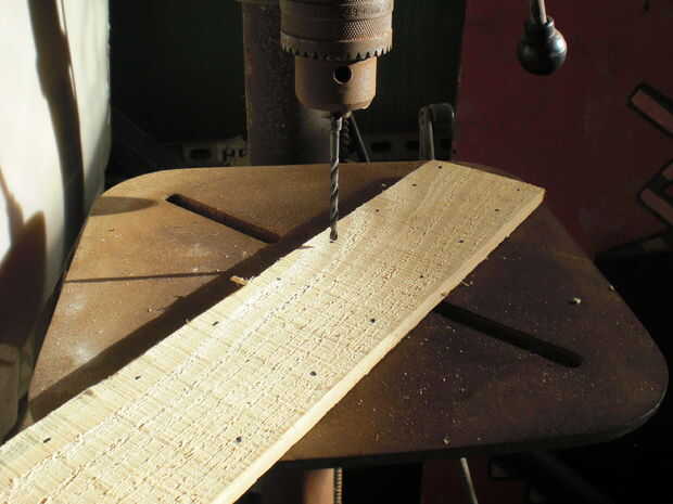 Empecé por agujeros en mi primera tabla y luego utiliza eso tablero como una plantilla para hacer el resto.
