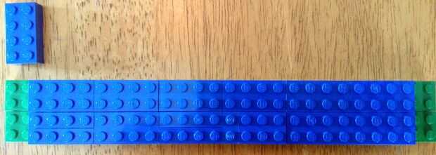 2. Construir una segunda capa de 13 ladrillos sobre la primera