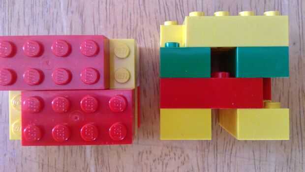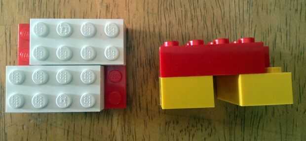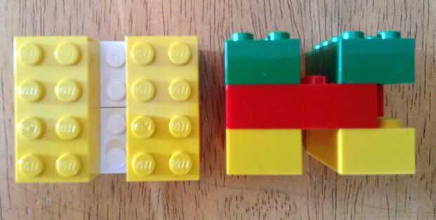 - Poner 2 ladrillos de la anchura de 1 fila de peg LEGO apart