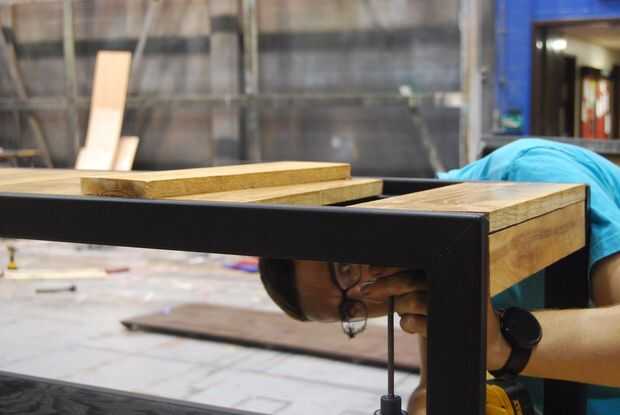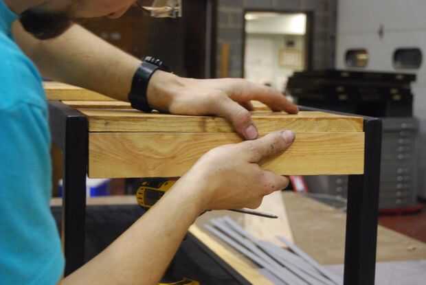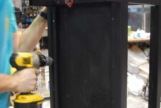 Una vez todo esté seco (seco lo suficiente como para manejar) pone todo en su lugar y atornillar la cubierta en lugar de la parte inferior de inicio. Si está utilizando un controlador de impacto tenga cuidado no apriete demasiado los tornillos y tira de la madera. Estar seguro de elegir un tornillo lo suficiente para agarrar las tablas, pero lo suficientemente corto como para que no sobresalgan de la parte superior. Comencé en el medio y había trabajado mi manera hacia fuera a los extremos. Esto asegura que las planchas de cubierta simétricas, pero si la simetría no es lo que va entonces omitir este paso. Recortan los tablones de dos extremos para que el tablero superior puede los tableros laterales y entonces Unido todo.