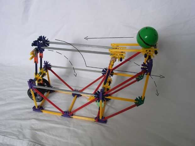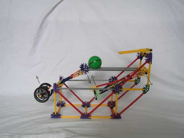 La bola rueda sobre la plataforma haciendo que se haga pivotar hacia abajo permaneciendo perfectamente nivelada.