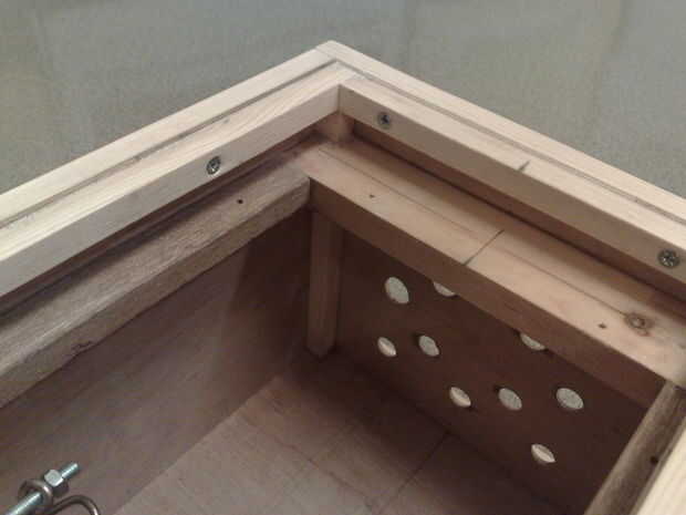 El borde exterior fue unido con tornillos desde el interior, que me permitió para asegurarse de que estaba alineado precisamente. Luego perforar los agujeros desde el interior y atornillada en el borde interno, asegurándose de que crear una superficie plana superior. Esto también no significaba ver cabezas de tornillo en el exterior.
