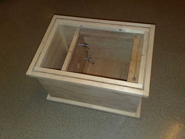 A continuación había instalado la pared interna a los soportes en los lados. Ya había puesto los tornillos del motor y anzuelos en el lugar, pero dejó el motor hasta que la madera era completa.