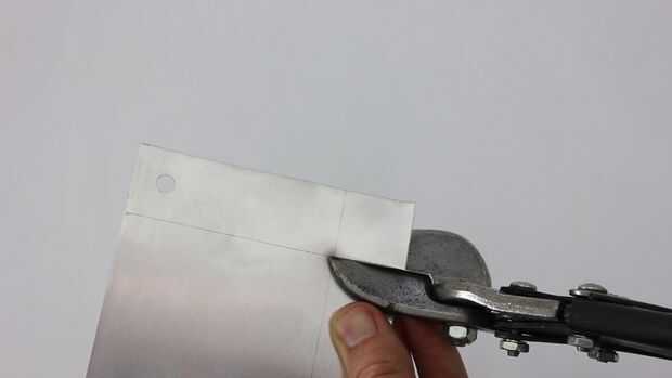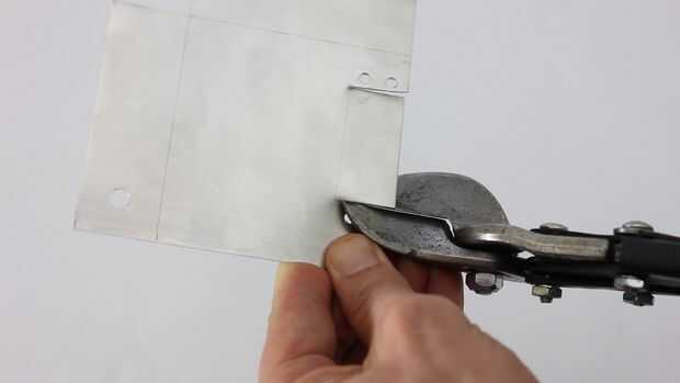 Entonces usando un pequeño pedacito de taladro, perfore un agujero en cada una de las ubicaciones de los orificios. Al taladrar la chapa a mano, prefiero comenzar con pequeños agujeros y les ampliar poco a poco por nuevas los orificios con brocas más grandes hasta que el agujero es del tamaño adecuado. Si tienes problemas para conseguir los agujeros iniciados, puede ayudar si usted primero abolla el metal con un clavo.