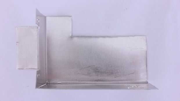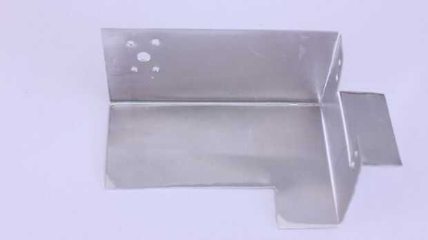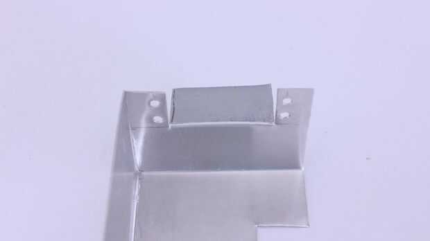 A continuación tenemos que marcar y cortar la segunda placa de montaje. La parte inferior de esta placa se conecta al rotor del motor servo panorámica y el lado izquierdo de la placa se conecta al cuerpo del motor servo tilt. El fondo y los lados izquierdos de la placa serán doblados para arriba para que sean perpendiculares a la parte posterior de la placa y uno al otro.